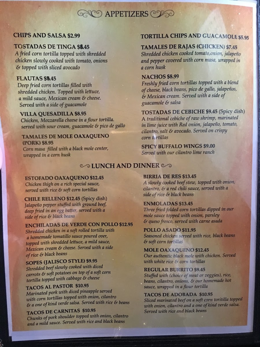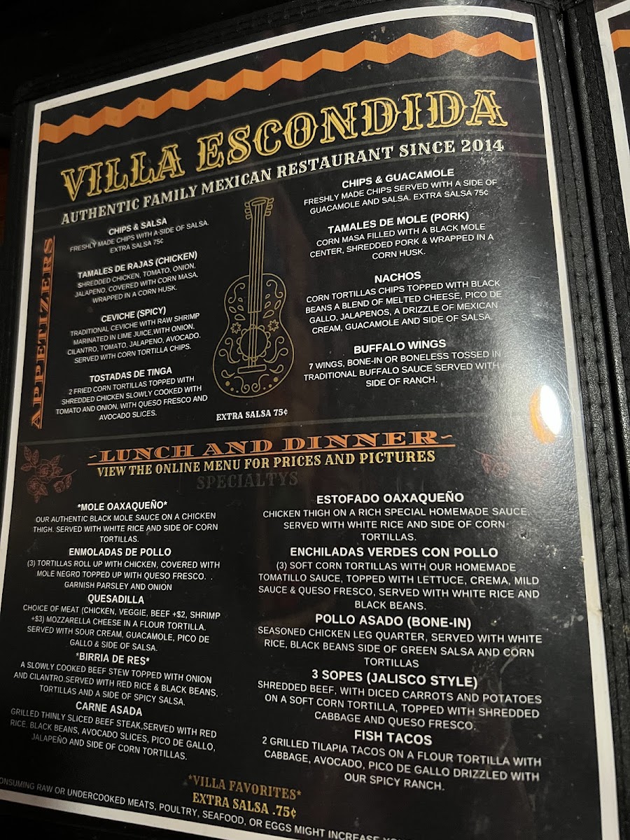 Villa Escondida Restaurant and Bar offers a menu that feels approachable and satisfying, blending classic Mexican flavors with a casual, lively atmosphere. The menu features comforting bites and classic staples that work well for a variety of occasions—whether you’re stopping in for a midday snack, enjoying a relaxed dinner, or unwinding with friends over drinks.